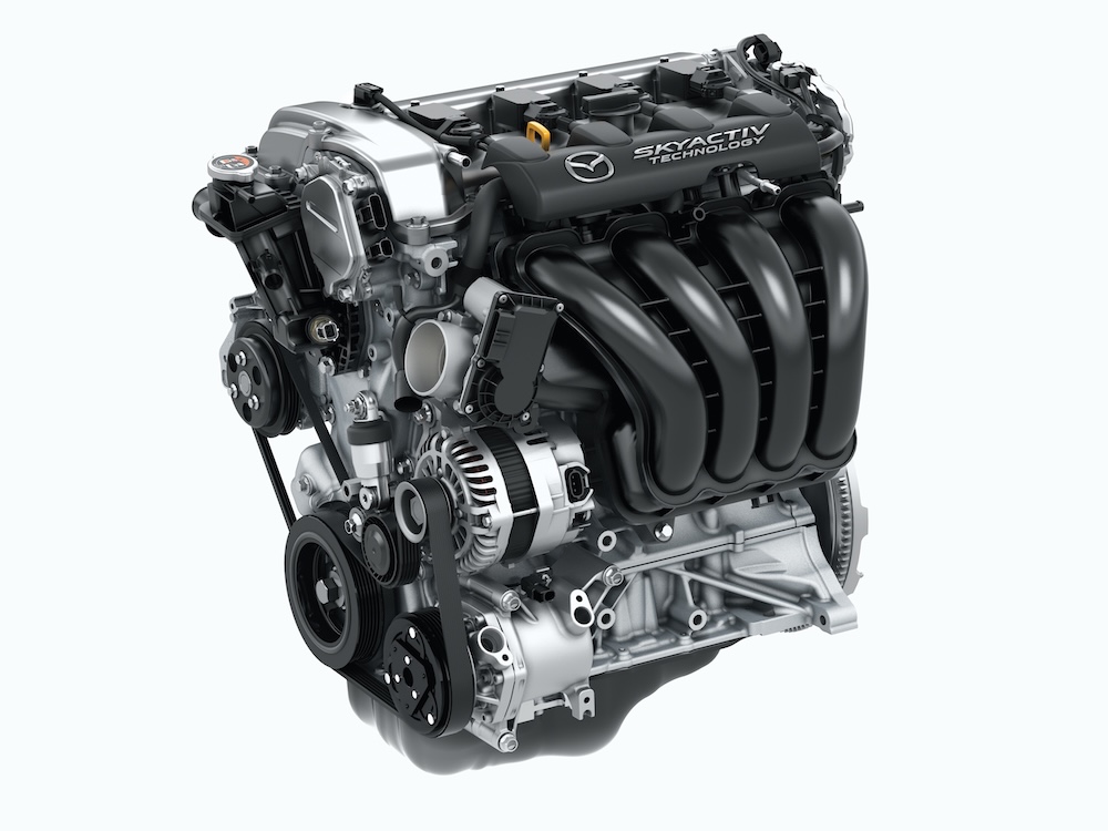 - Enjin 4-silinder 2.0L Skyactiv-G (1,998cc) DOHC 16-injap dengan VVT dalam sistem pacuan dua roda (2WD).