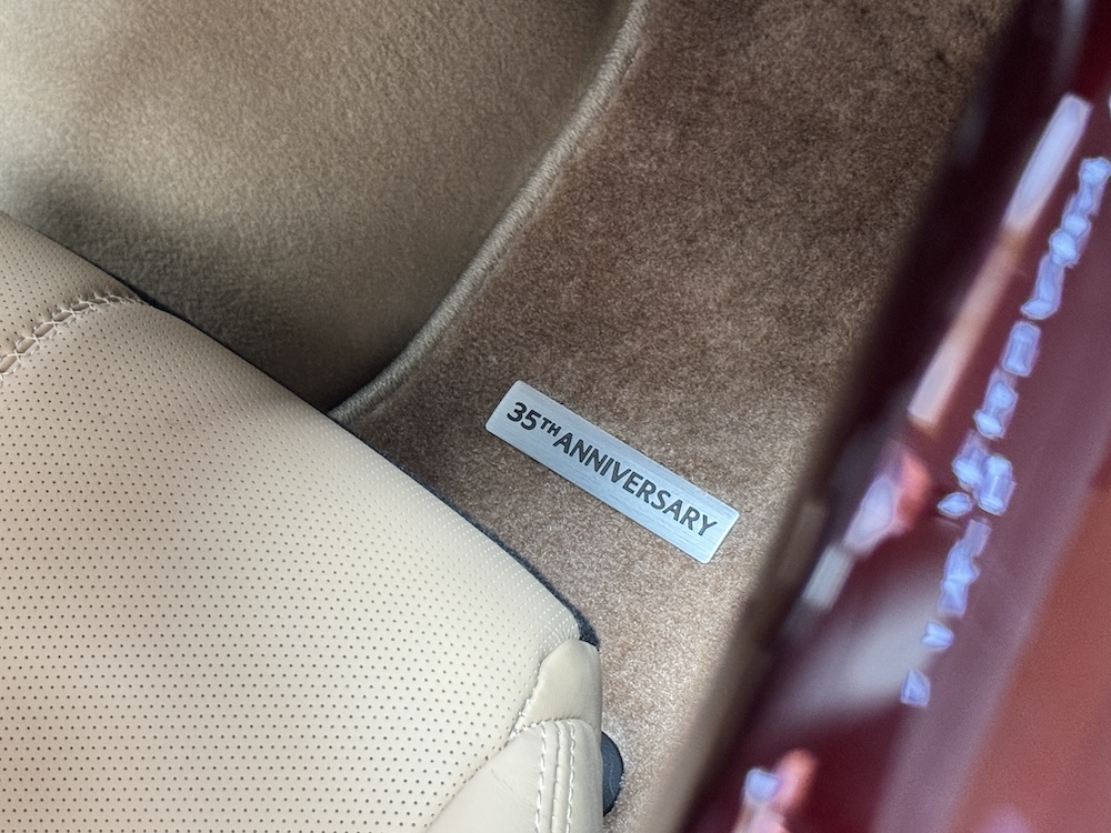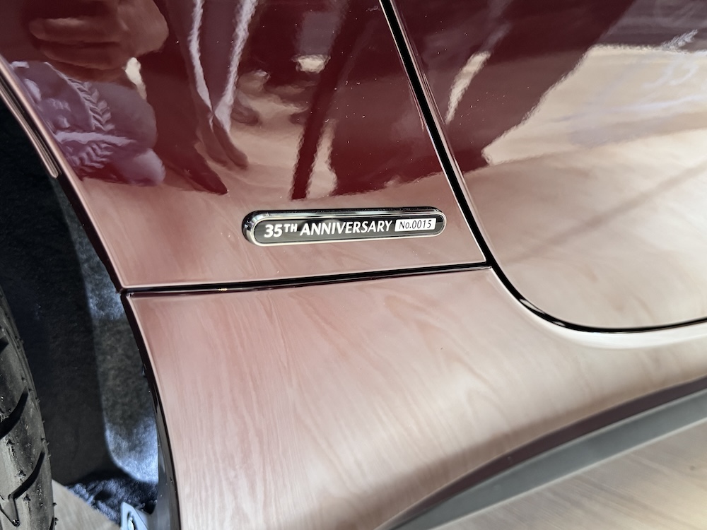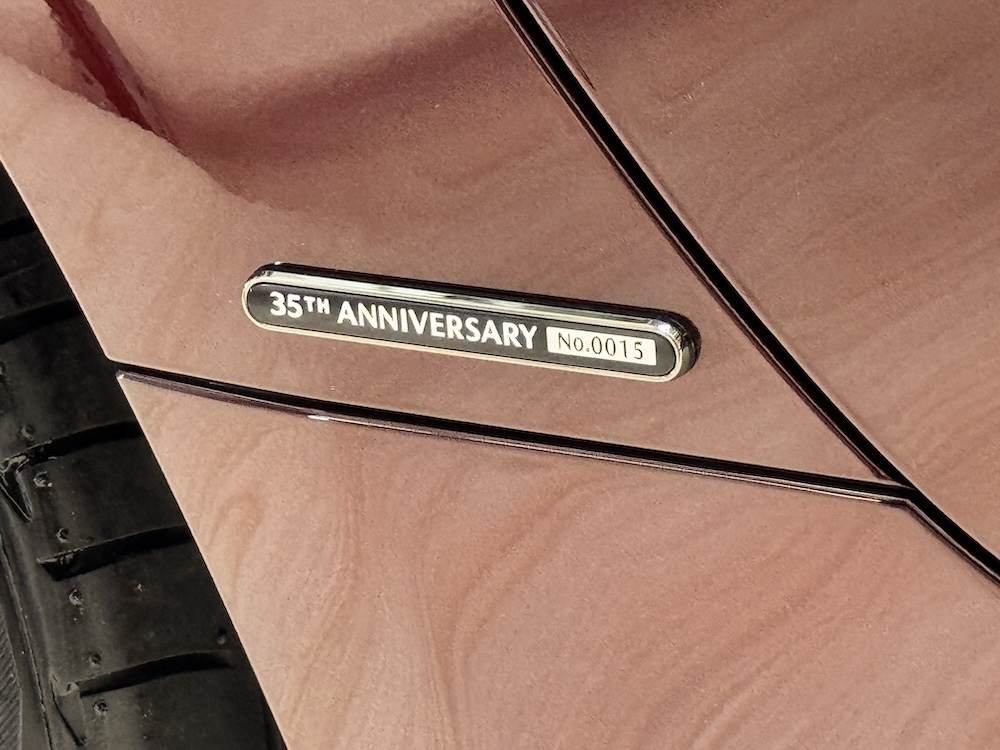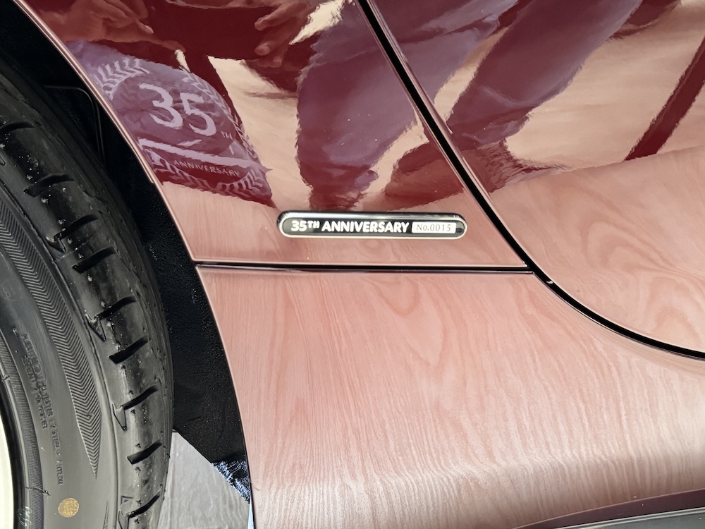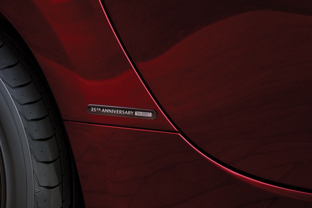 Bahagian luaran kereta sport itu dilengkapi lencana 35th Anniversary Edition di bahagian fender belakang dan rim aloi 17 inci dicat warna Bright Metallic. Cermin sisi juga sama warna dengan badan kereta.