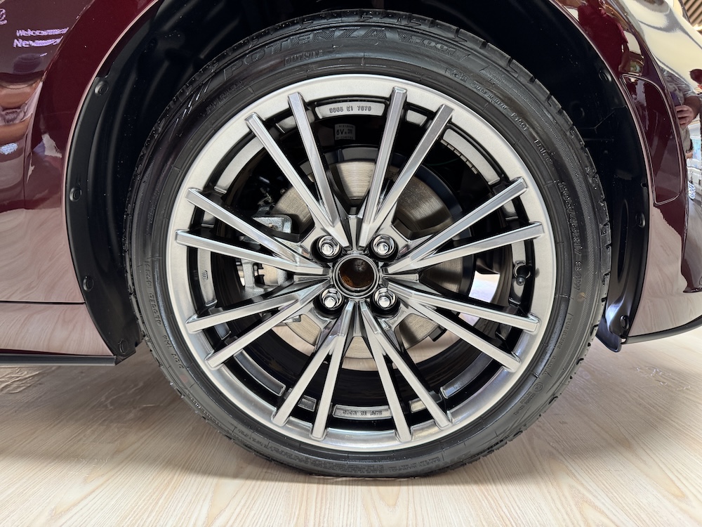 - Sistem suspensi double-wishbone di depan dan multilink di belakang.