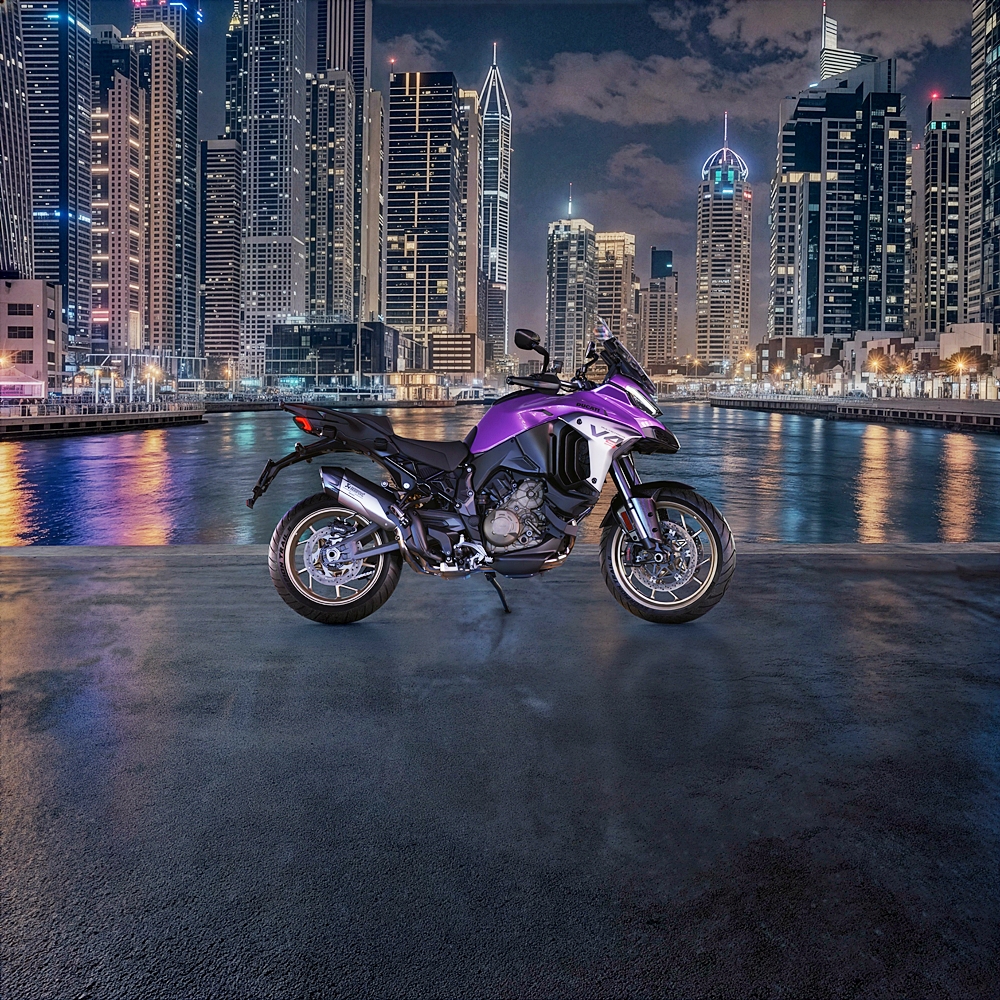Beberapa warna ikonik Ad Personam Lamborghini kini ditawarkan di dalam konfigurator Multistrada V4, termasuk Viola Pasifae (ungu metalik), Arancio Xanto (oren terang), Giallo Belenus (kuning terang), Blu Uranus (biru terang) dan Verde Scandal (hijau terang).