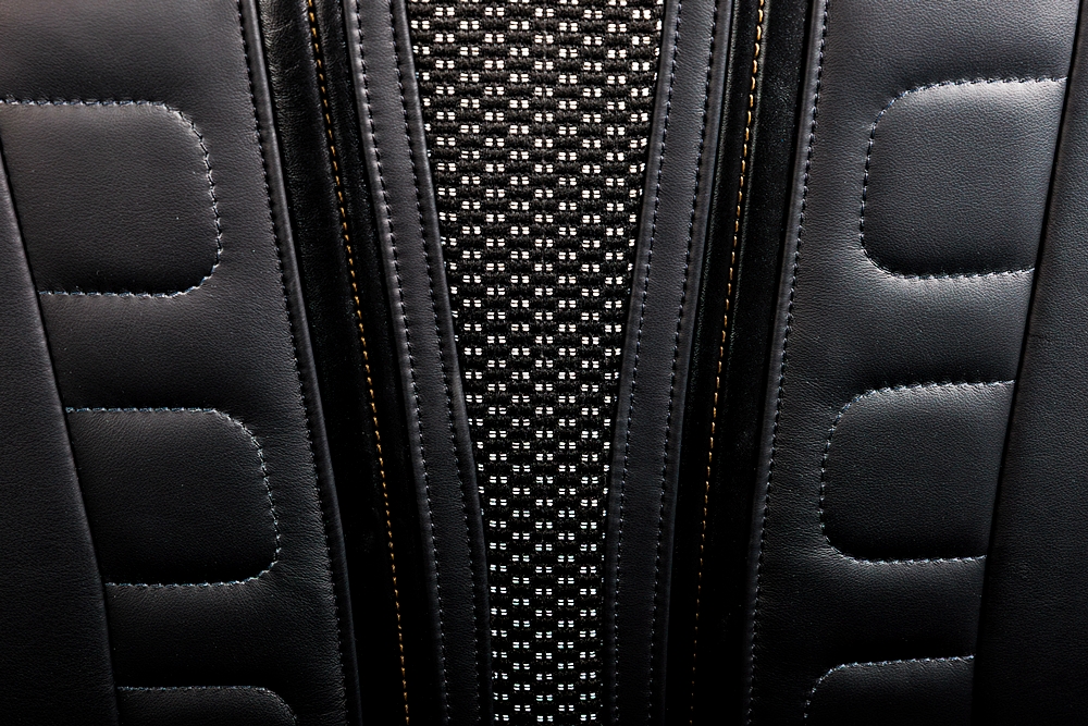 Bahagian dalaman kereta ini menampilkan balutan dan kemasan trim yang lengkap dengan perincian dan perkakasan logam berkilau cetakan 3D dan dimesin.