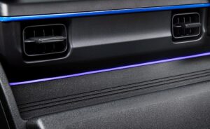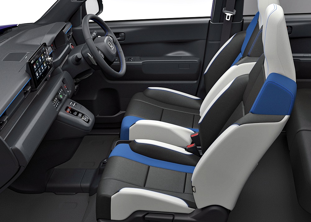 Di bahagian dalam, ia dilengkapi kerusi sport eksklusif dengan kemasan biru asimetri bagi memastikan posisi pemanduan yang stabil untuk penumpang.