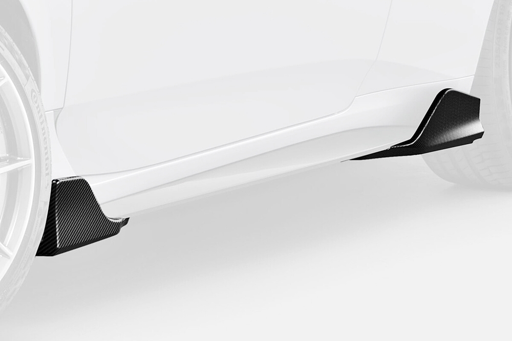 - Bahagian Sisi: Skirt sisi karbon yang berfungsi sebagai aksesori sporti tambahan pada profil sisi kereta.
