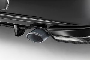Dari segi kosmetik, bahagian hujung ekzos atau finisher diberikan kemasan hitam bagi memastikan ia kelihatan bersepadu dengan komponen karbon yang lain, sekali gus memberikan kesan visual yang berkualiti tinggi dan premium.