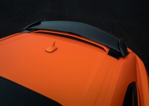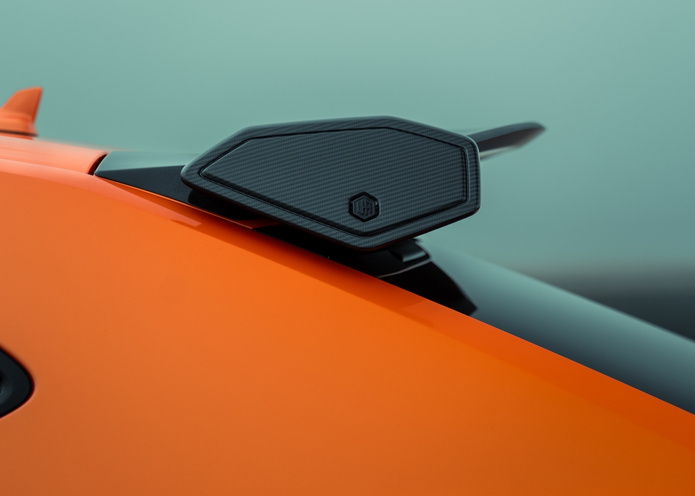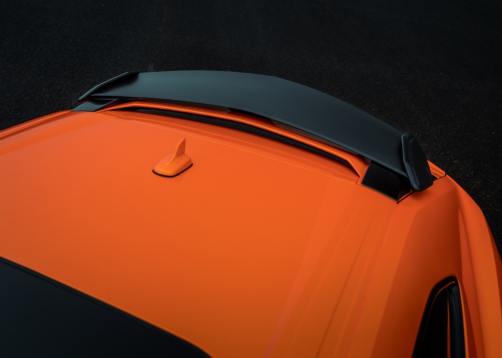Bagi melengkapkan aspek aerodinamik, sebuah spoiler gentian karbon visual dipasang pada bahagian atas spoiler asal bagi menghasilkan kesan aero double stacked yang dramatik, lengkap dengan plat hujung yang membawa logo UA.