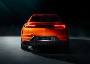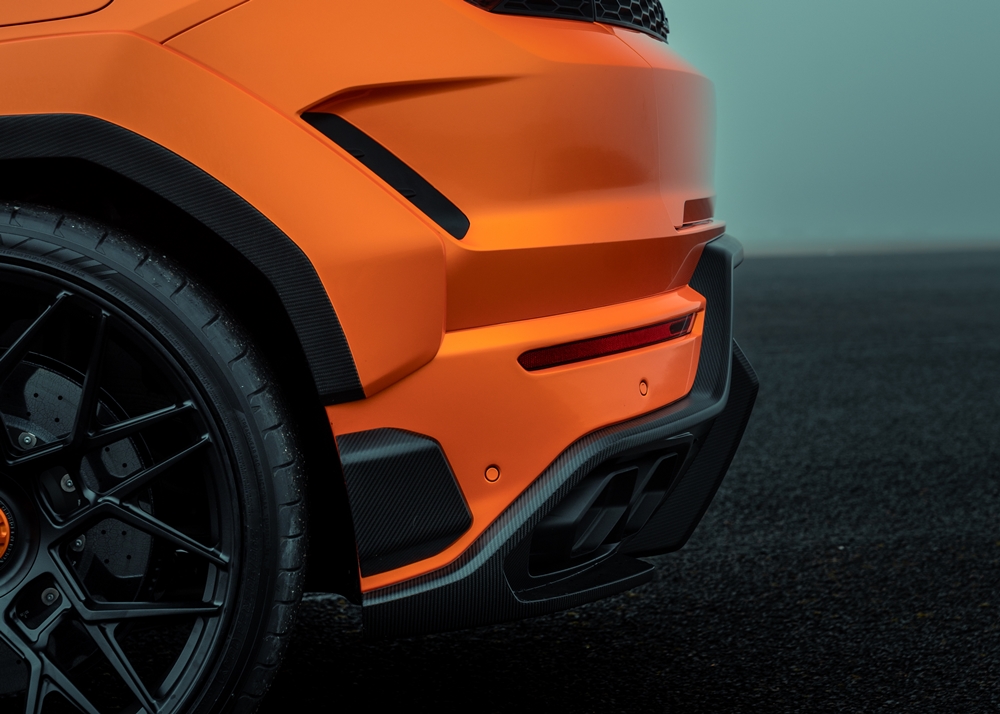 Bahagian belakang Urus SE menampilkan bampar gentian karbon baharu dengan difuser dua liang serta sirip hujung canard yang berasingan.