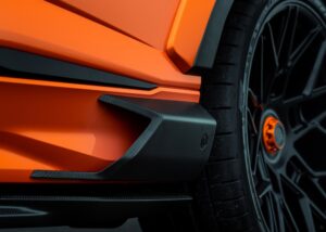 Rekaan ini diinspirasikan secara langsung daripada model Lamborghini Aventador SVJ, di mana corong masuk dan keluar udara dihasilkan melalui cetakan 3D dengan kemasan corak Hex ikonik Lamborghini.