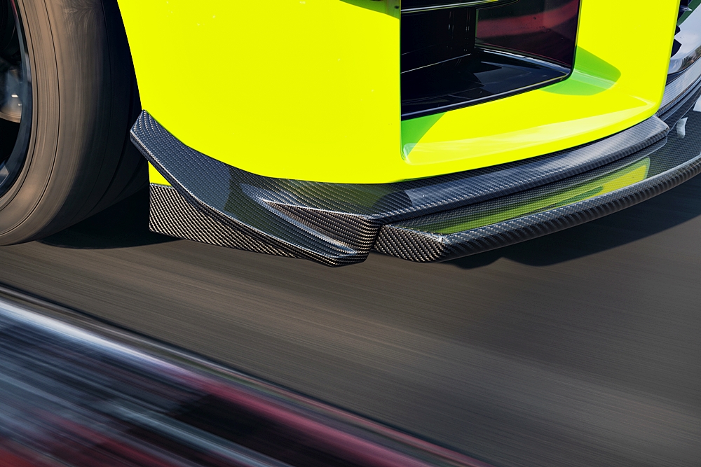 Satu daripada komponen utama dalam M Performance Track Kit ialah splitter depan boleh laras secara manual yang disatukan dengan difuser depan.