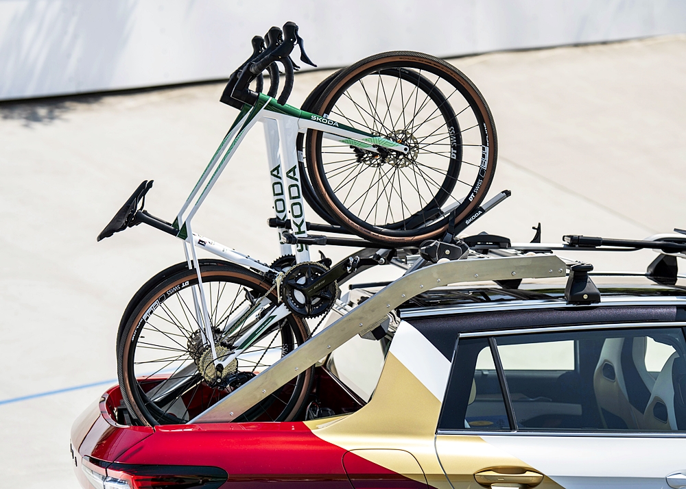 - Rak Basikal Bersepadu: Dua rak basikal standard dari Aksesori Tulen Škoda dipasang pada platform. Apabila platform ditarik balik, pembawa dan basikal condong ke atas 35 darjah, mengekalkan panjang kenderaan asal. Rak bumbung menyediakan ruang untuk basikal ketiga.