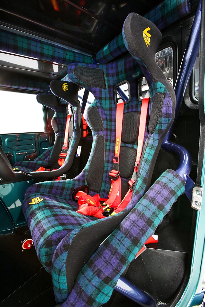 Bahagian dalaman juga tidak kurang hebat hasil kerjasama Complete Customs. Kerusi MOMO Daytona EVO dibalut semula, manakala stereng MOMO Jackie Stewart 1968 menemani pemandu melepasi halangan mencabar atau menikmati tiupan angin di jalan raya.
