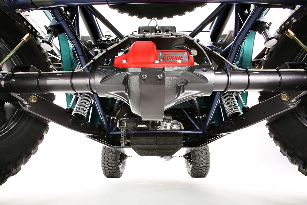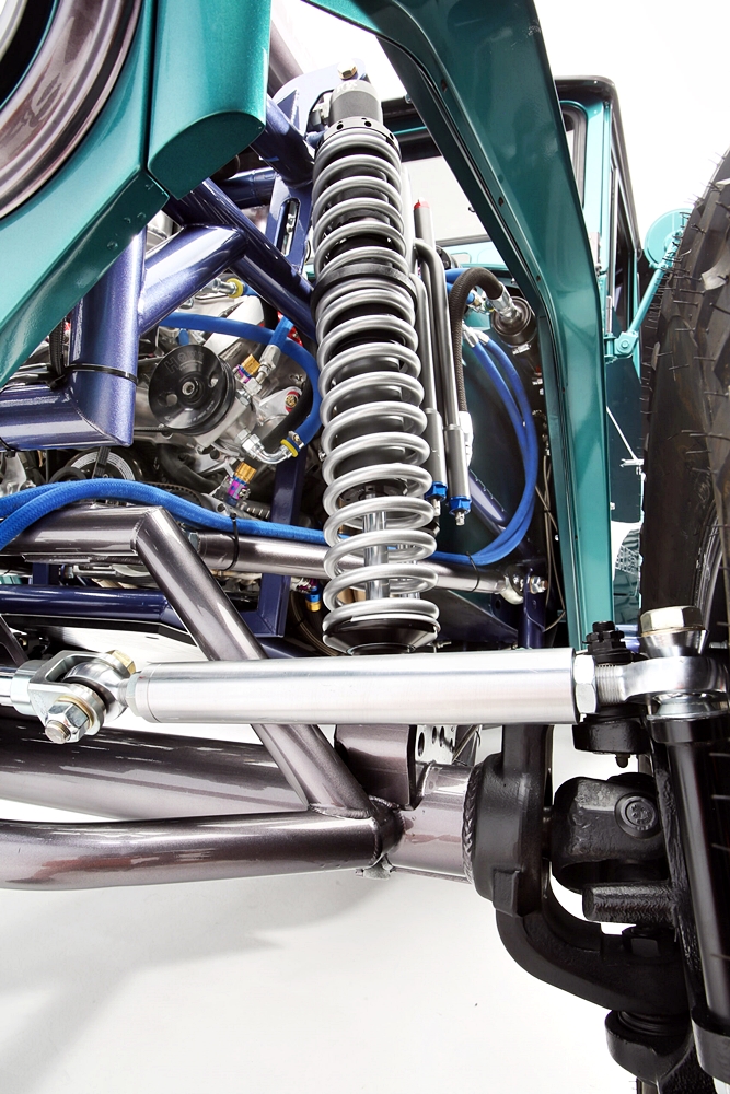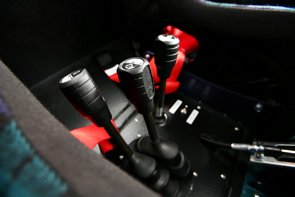 Kekuatan enjin dipindahkan melalui kotak gear lumba 3-kelajuan daripada Rancho Drivetrain Engineering dengan ekzos MagnaFlow melepaskan hiburan telinga yang kuat.