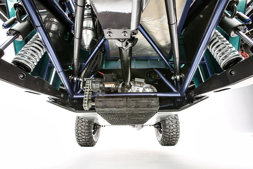 komponen suspensi terdiri daripada absorber Fox dan spring Eibach, manakala tayar BF Goodrich Krawler T/A KX saiz 42 inci dipakaikan kepada rim Method Beadlock 20 inci.