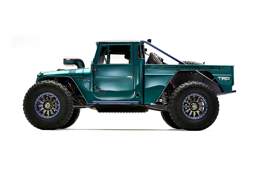Contoh kenderaan diubah suai itu dipamerkan Toyota menerusi trak pikap FJ Bruiser sempena acara Persatuan Pemasaran Barangan Khas (SEMA) 2023. Asalnya ialah trak pikap FJ45 1966 yang juga dibuat sempena meraikan Land Cruiser baharu.