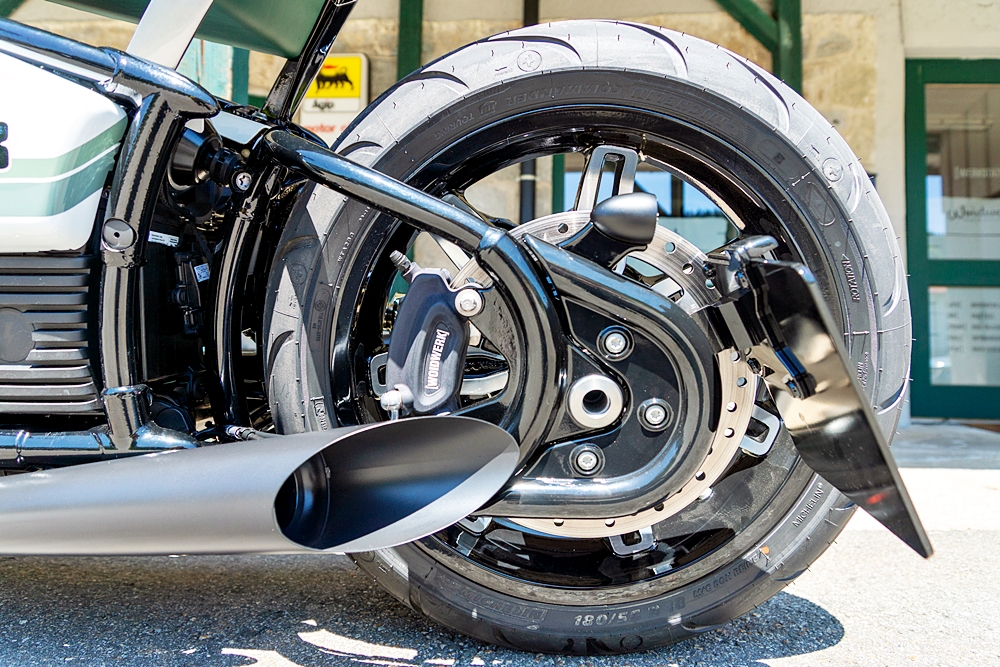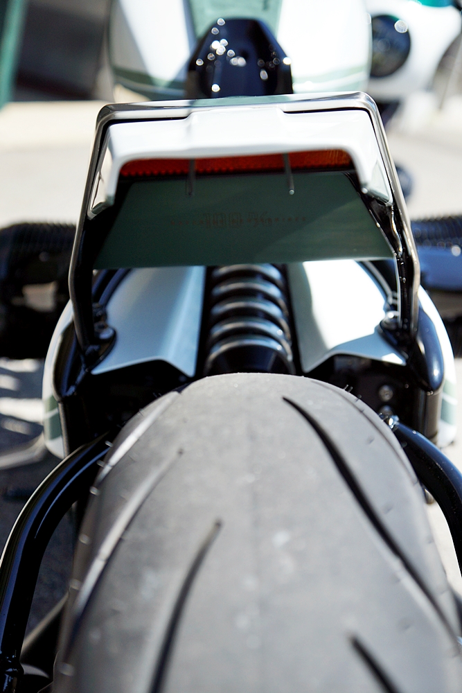 - Bahagian belakang dipendekkan secara drastik mengikut gaya bobber klasik untuk rupa yang kemas dan minimalis.