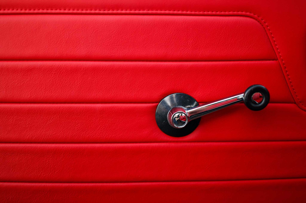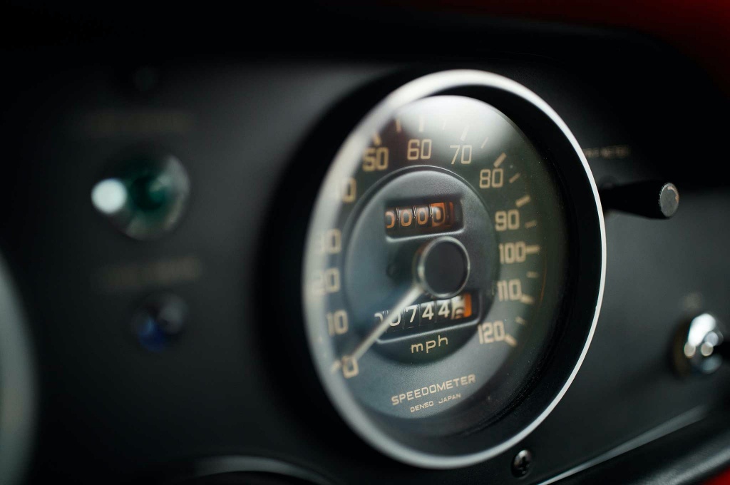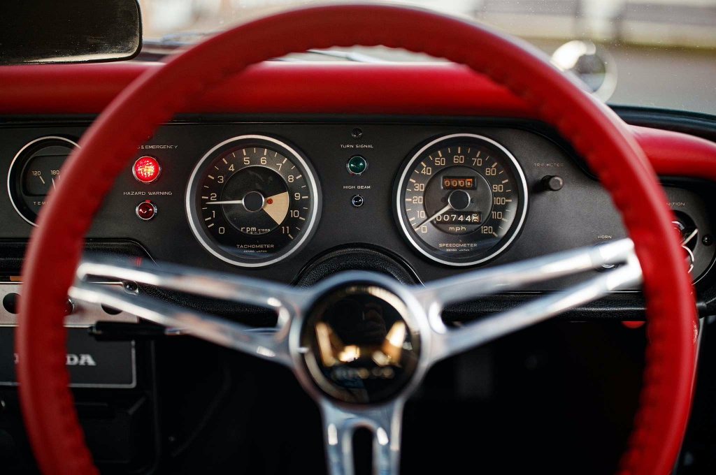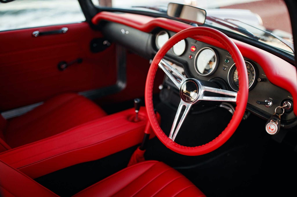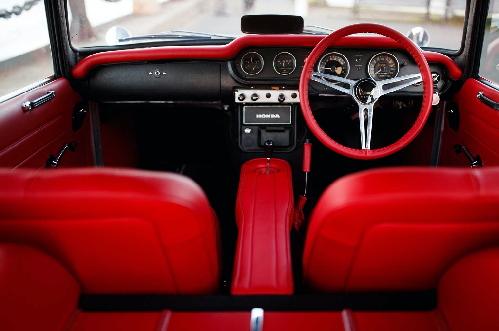Kemasan upholsteri menggunakan material kulit merah gelap pada kerusi dan panel pintu, manakala instrumen meter OEM dan butang kawalan dikekalkan. S800 yang direstorasi Wu dengan bantuan beberapa pakar modifikasi ini adalah campuran modifikasi antara moden dan tradisional.