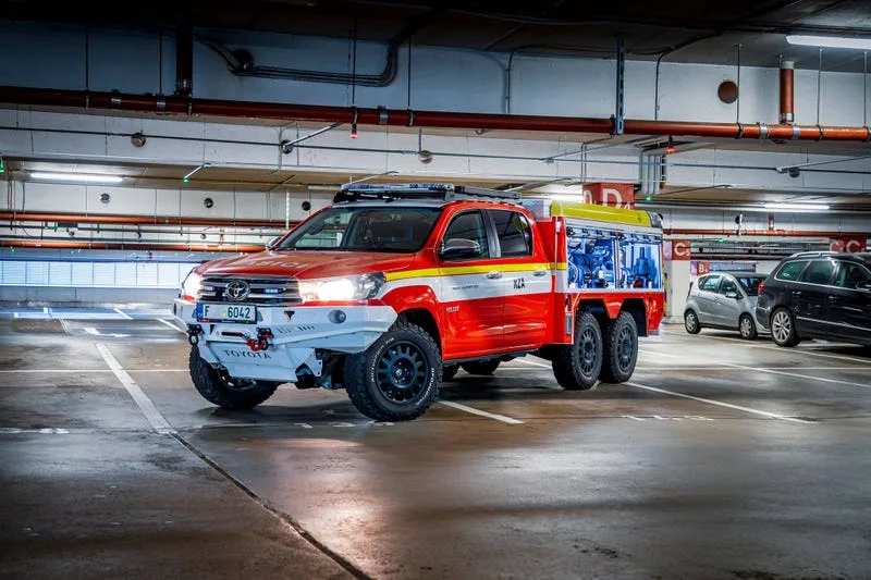 Apa penyelesaiannya? Sebuah syarikat dari York, England, Prospeed Motorsport mengubah suai Toyota Hilux kepada Hiload Rapid Intervention Vehicle (RIV) ddalam pacuan enam roda (6×6)!
