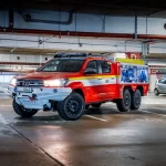 Apa penyelesaiannya? Sebuah syarikat dari York, England, Prospeed Motorsport mengubah suai Toyota Hilux kepada Hiload Rapid Intervention Vehicle (RIV) ddalam pacuan enam roda (6x6)!