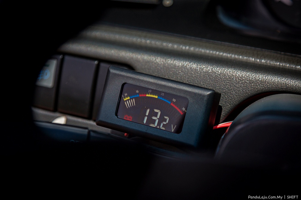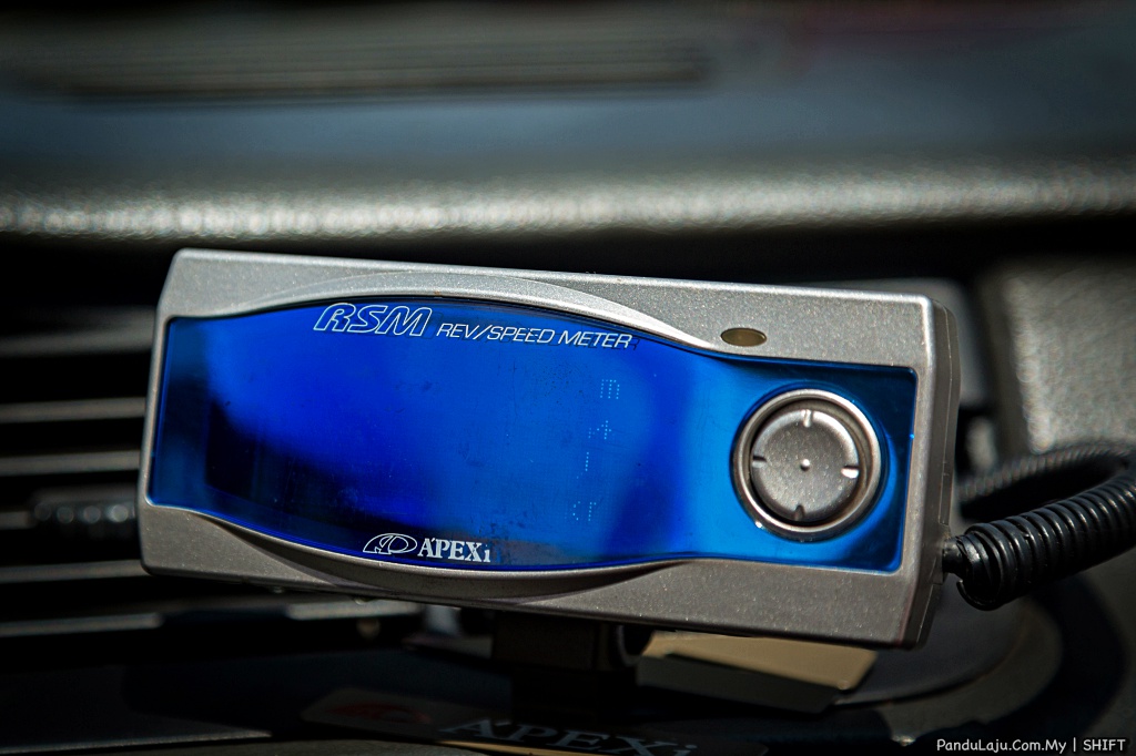 Melangkah masuk ke kabin, pemilik memilih pelbagai aksesori aftermarket seperti stereng Mugen, kerusi bucket karbon Kevlar Konic, kerusi penumpang sebelah Recaro EK9 yang dipasangkan bersama tali keledar Takata. Bahagian papan pemuka terhidang meter voltan dan suhu air Apexi RSM.