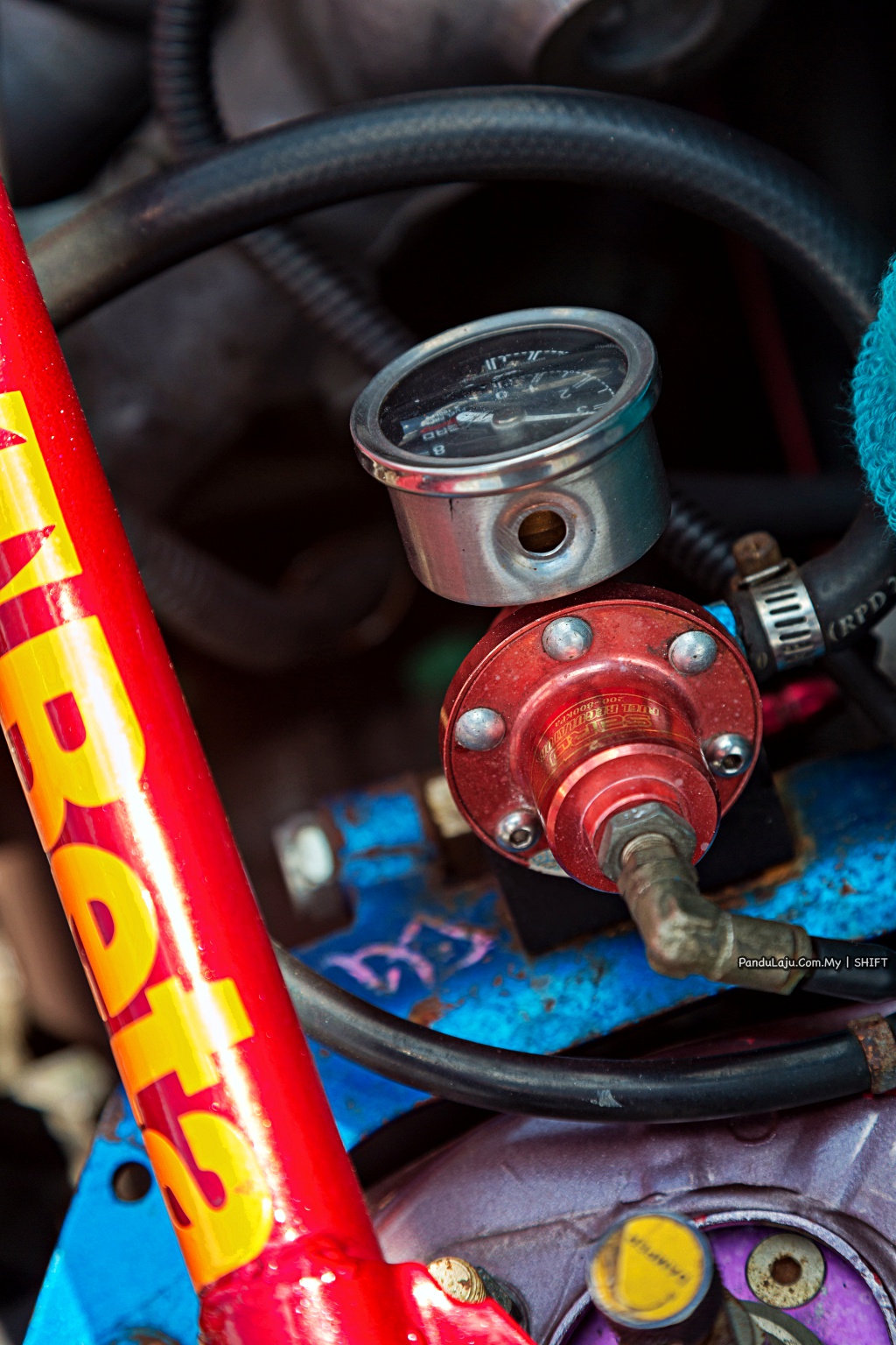 MODIFIKASI ENJIN: Aliran udara kustom, terotel badan S90, regulator minyak Sard, kabel plag 9mm, ekstraktor Hi-Tech, mufler J’s Racing