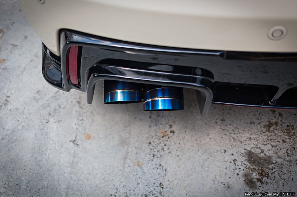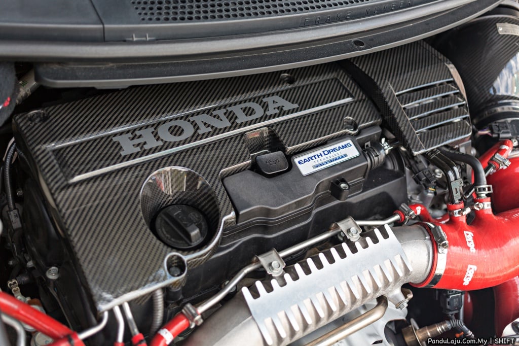 MODIFIKASI ENJIN: Forge (intercooler, hos intercooler, hos radiator, hos kecil , hos intake udara), J’s Racing keluli tahan karat, ekzos, HKS 4 blow-off, kit pendingin minyak Forge, paip bawah Dream Automotive, intake udara Eventuri , pelindung kepala silinder gentian karbon