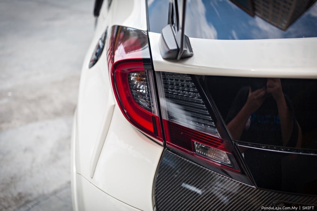 LUARAN: Hud depan gentian karbon kustom TCR, komponen gentian karbon Honda Access, lampu kabus Modulo Honda Access, Mugen GT Wing