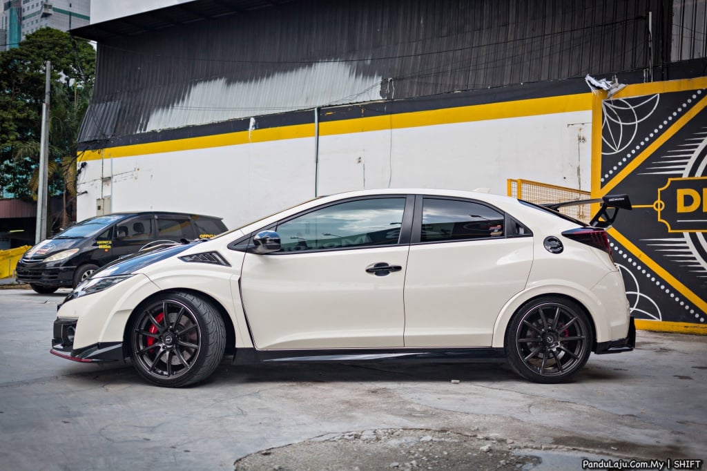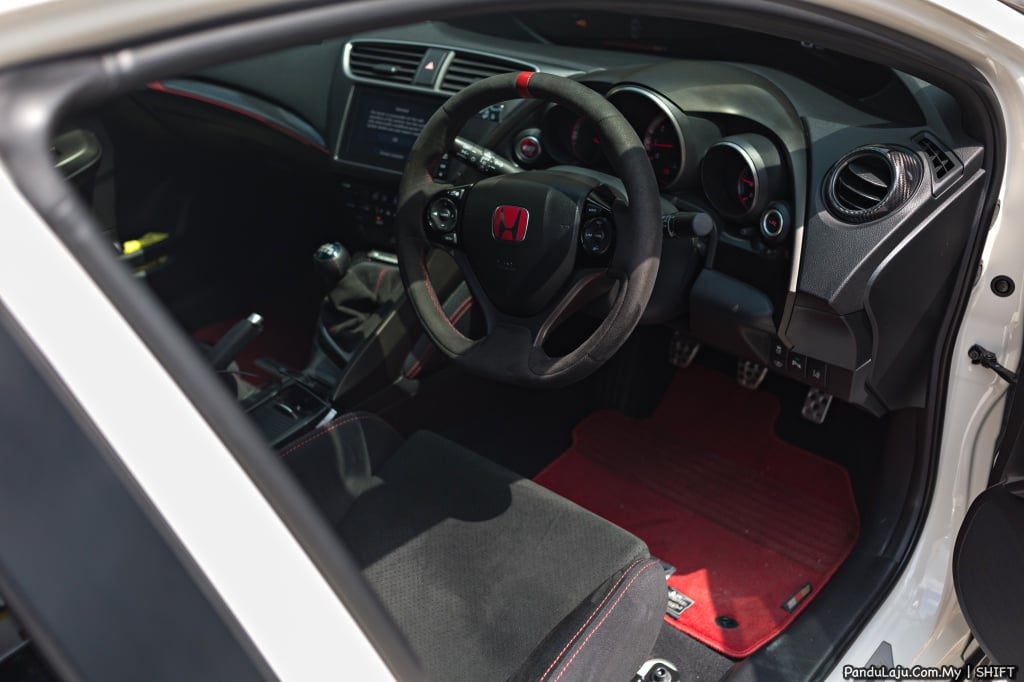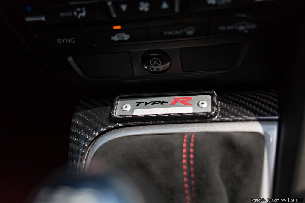 Melengkapkan imej Type R, bahagian roda menggabungkan rim sport Volk Racing Grams Light G25 bersaiz 19 inci dengan balutan tayar Yokohama AD08R. Bahagian kabin pula pemilik memilih kerusi Mugen MSZ dengan tombol gear yang juga Mugen.