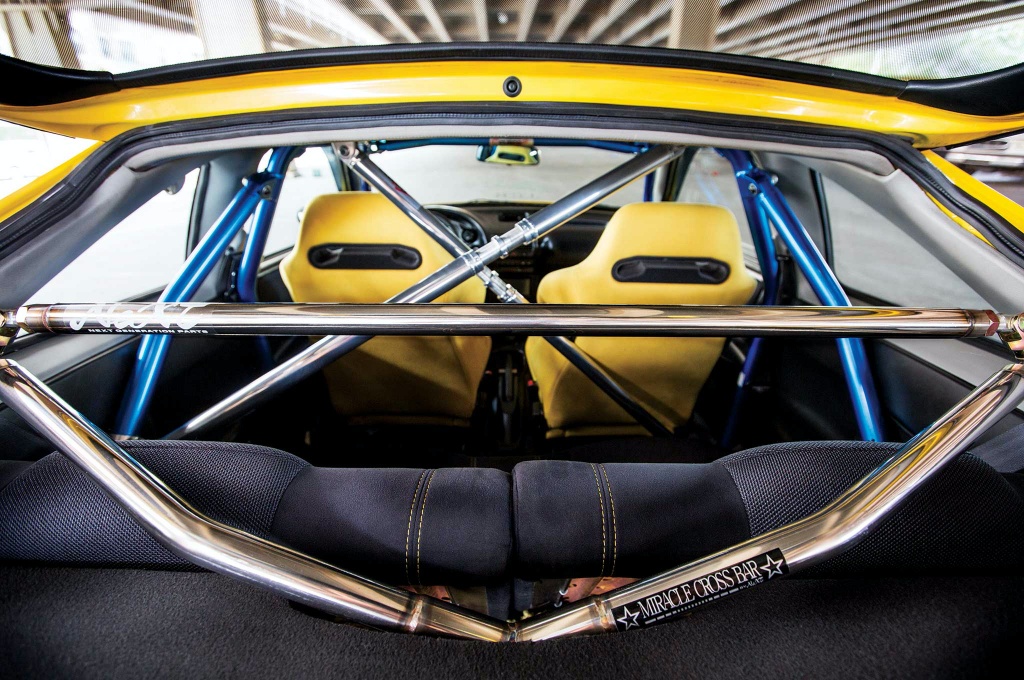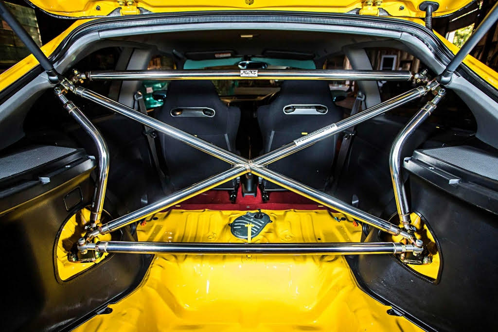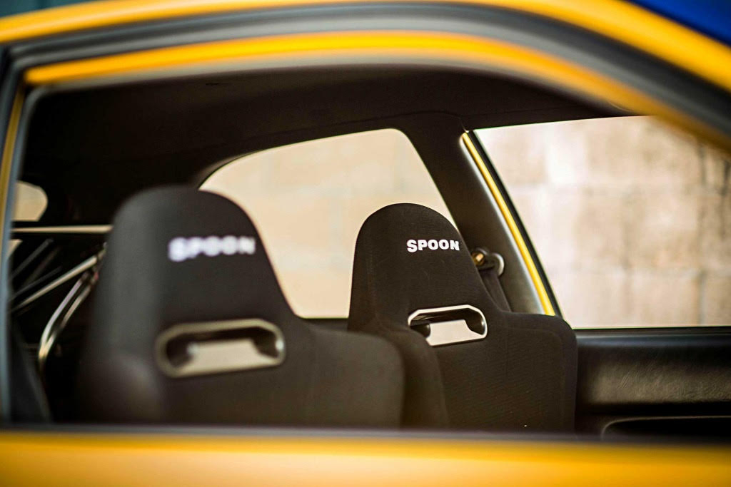 Jika diteliti lebih dekat, ada padanan Mugen unik iaitu campuran solid komponen Spoon Sports. Mungkin bukan satu kebiasaan untuk melihat campuran Mugen dan Spoon. Dalam kabin, Shyam memilih kerusi depan Type Rx dengan kemasan kuning terang dan kerusi belakang Rx.