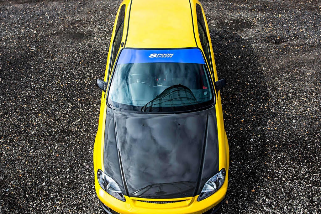 Senarai panjang komponen bolt-on Spoon digunakan pada header, terotel badan, ambilan (intake) dan penapis Kevlar, radiator, hos dan banyak lagi. Padanan kombo kuning dan hitam begitu sinonim dengan EK9, manakala rim Spoon SW388 disertai dengan bonet gentian karbon asli, cermin sisi dan spoiler yang juga karbon. Pemisahan karbon tunggal dari katalog Spoon boleh dilihat pada bawah bampar depan menerusi pemilihan lip First Moulding.