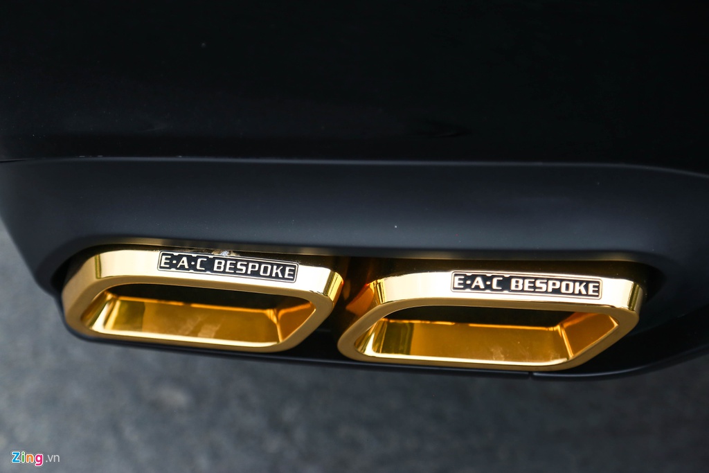 Kedua-dua sisi kereta ini tertera logo bentuk sayap bersalut emas 24K dengan paparan teks EAC – Bespoke Edition. Rim asal 19 inci AMG pula dinaik taraf kepada saiz 20 inci, juga buatan AMG Jerman dan semua disadur emas 24K. Saduran emas juga dibuat pada komponen lain seperti perumah cermin sisi, muncung ekzos, gril dan bampar depan.