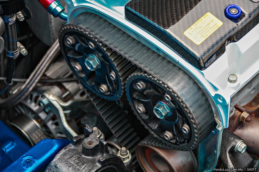 Ia kemudian disambungkan dengan rel minyak Sard yang turut dilengkapi injektor Clinic 1650cc. Terlalu banyak komponen prestasi digunakan bagi mendapatkan kuasa dimahukan. Kotak gear CM5A D dilengkapi plat klac kembar Competition untuk melancarkan kuasa ke bahagian roda. Bagi memastikan kuasa lebih baik dan terurus, janaan enjin dibantu Microtech LT-10C dan ECU X4 Standalone.