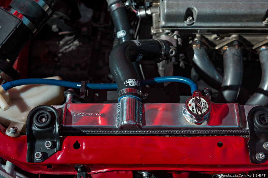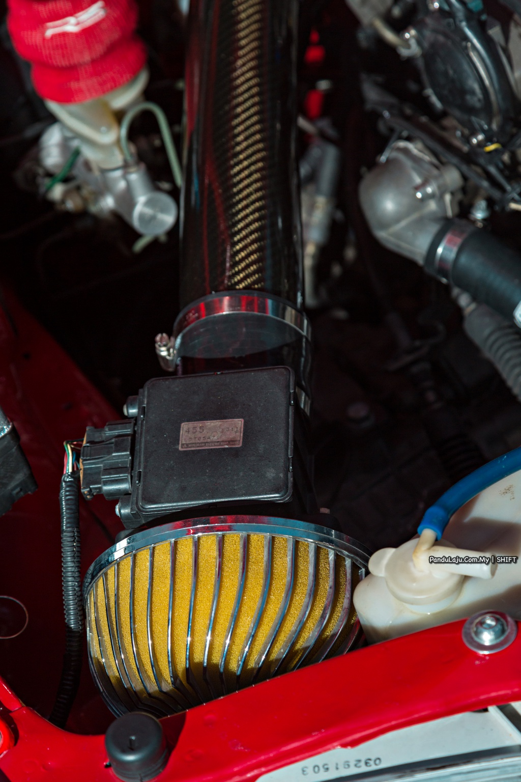 Nadi enjin 4G93 menjadi bahan uji kaji pemilik. Bahagian kepala silinder dan blok enjin diubah suai bagi mendapatkan kuasa puncak maksimum. Segalanya dilakukan mengikut perkiraan supaya lebih selamat. Tidak ketinggalan pemilihan paip intake gentian karbon BSR turut boleh dilihat pada bahagian enjin.