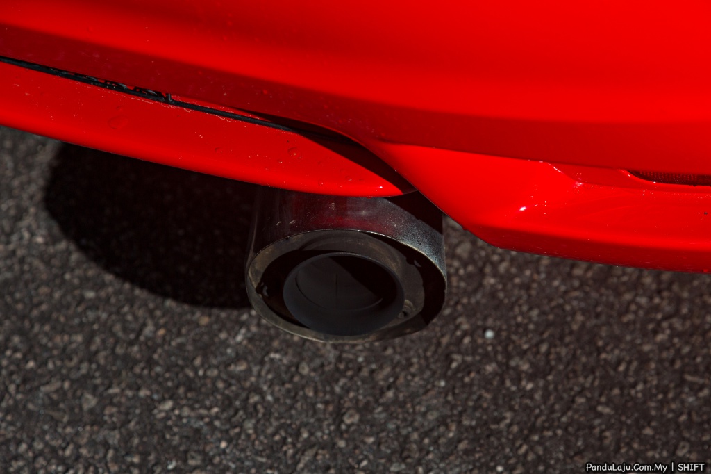 Bahagian luar menggunakan kit badan GTi yang dipasangkan pada lip depan R3 dan disembur cat merah Taxi Red dengan lapisan 2K. Penampilan tampak lebih hebat menerusi padanan rim Works RSZ Gamma 15 inci dan tayar GT Radial SX2 di depan.