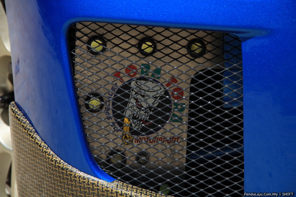 Myvi biru ini kemudian dipadankan rim Racing Hart CP 035 bersaiz 15 inci yang dibaluti tayar Yokohama Advan Neova AD08R supaya tampil lebih garang di jalanan.