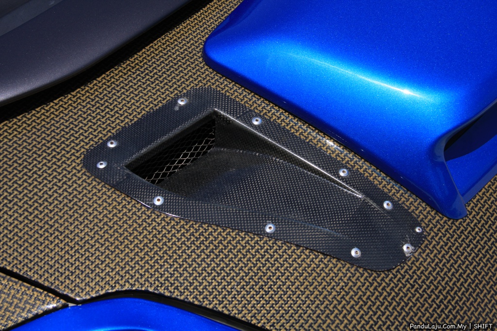 LUARAN: Bahagian badanPasso Racy, hud & bonet belakang Kevlar, panel bampar Kevlar, pintu belakang Kevlar, GT Wing Cusco, cermin sisi Ganador, bampar passo, eyelip Sirion. Scoop X4, cangkuk tunda Tora-Tora, wiper PIAA CF