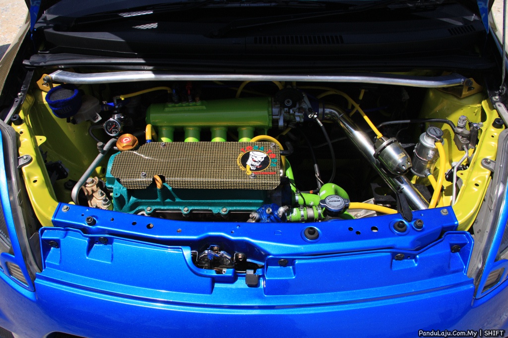 Kerap digelar sebagai supercar Malaysia, model Perodua Myvi ini mengalami perubahan penuh pada bahagian trenkuasa menerusi padanan enjin YRV 1.3 turbo TD04L untuk menghasilkan ledakan kuasa berganda. Turut dipasangkan beberapa kelengkapan lain seperti unit blow-off HKS SQV, wastegate Tial 38mm dan pam minyak Walbro.