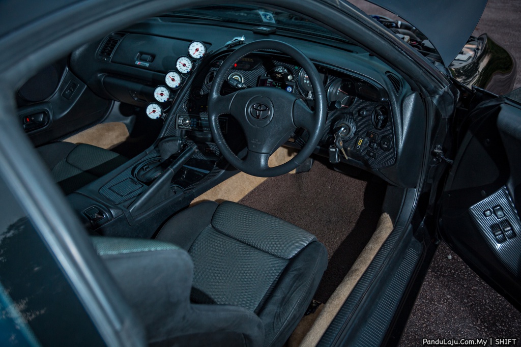 DALAM: Kerusi Recaro SR4, meter HKS DB, kawalan boost HKS EVC, nisbah minyak udara Autometer