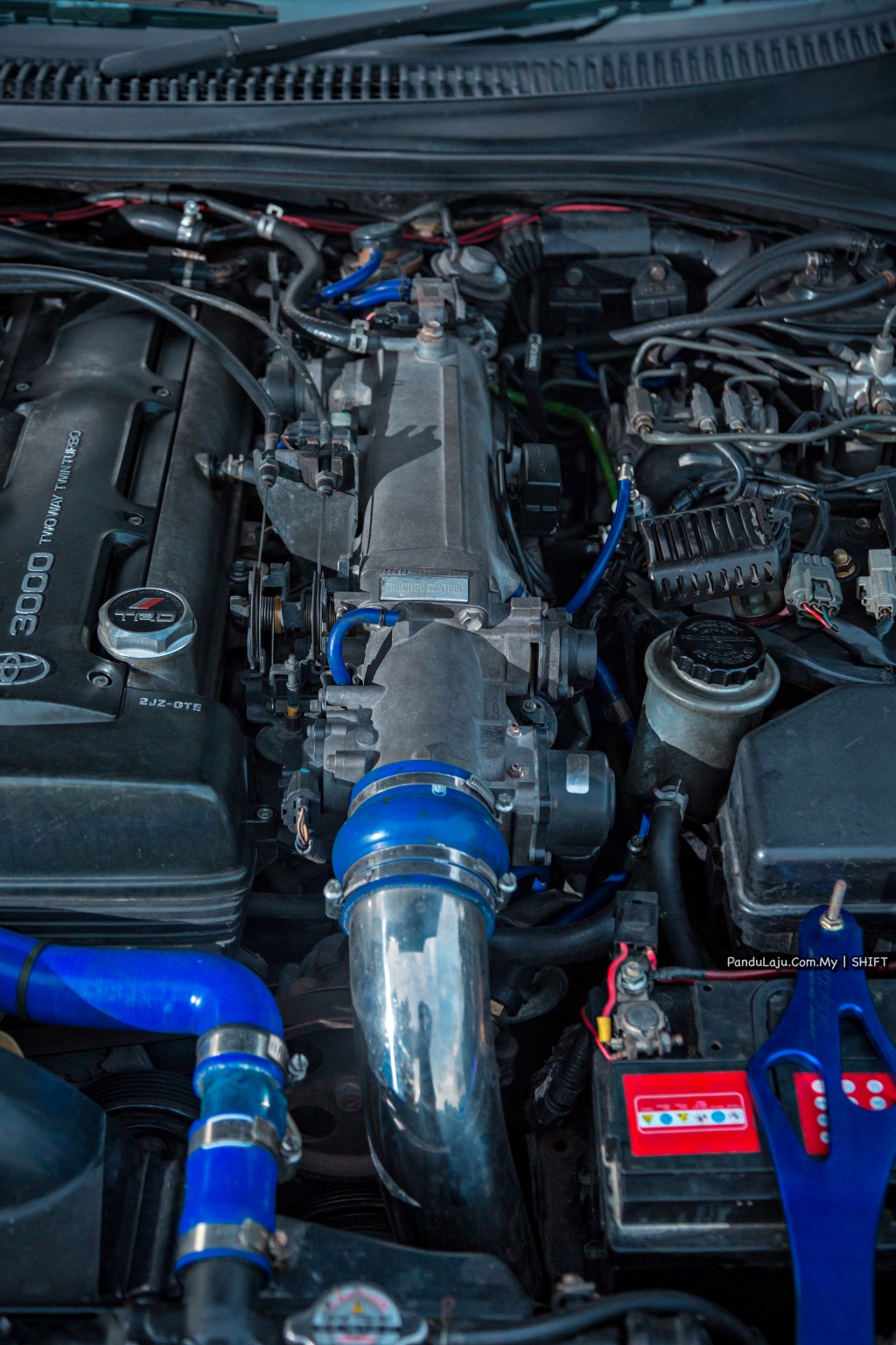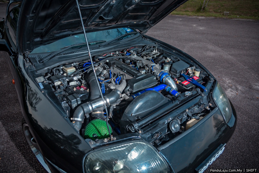 Kita sendiri sedia maklum trenkuasa 2JZ GTE bersesaran 3.000cc turbo kembar sebenarnya sudah cukup berkuasa dan tiada apa pun perlu dilakukan. Pemilik cuma memasang penapis udara HKS bagi memastikan udara yang menerjah masuk kebuk enjin lebih bersih. Selain itu, beberapa paip sambungan digantikan komponen tahan karat dan hos Samco Sport.