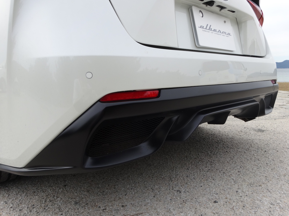 Dari belakang, Albermo menawarkan komponen difuser besar yang menjadikan Prius nampak lebih menonjol dengan set lampu belakang kekal standard. Kelihatan juga dekal tiga warna yang mewakili bendera Itali dan logo petak berwarna kuning. Harga pek naik taraf ini cuma 78,000 yen (RM3,160).