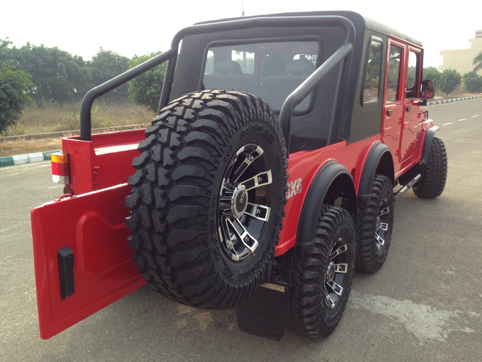 Idea berkenaan diambil daripada Mercedes G63 AMG 6×6, tetapi tidaklah begitu mirip dengan model Jerman bernilai jutaan ringgit itu. Thar 6×6 itu adalah hasil sentuhan SD Offroaders dari Nakodar, Punjab, India yang tampil dengan tambahan bahagian badan belakang menerusi pemasangan gandar panjang.