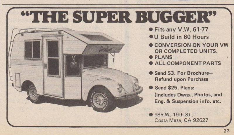 Kit Super Bugger ditawarkan untuk Beetle generasi lama keluaran 1961-1977 yang mengambil masa 60 jam untuk dikustomkan. Apabila siap, kereta kamper itu memang selesa diinap dua individu dewasa.