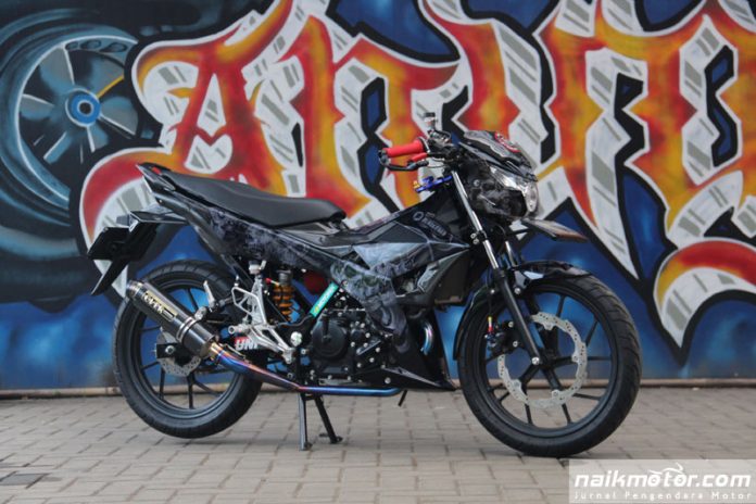 Pemilik Belang aka Satria dari negara seberang, Kelly Nugroho tampil berbeza dengan tidak mengikut trend modifikasi anak muda zaman kini yang kerap bermain dengan warna. Dia memutuskan melakukan ubah suai sederhana sahaja dengan memilih warna hitam.