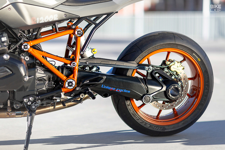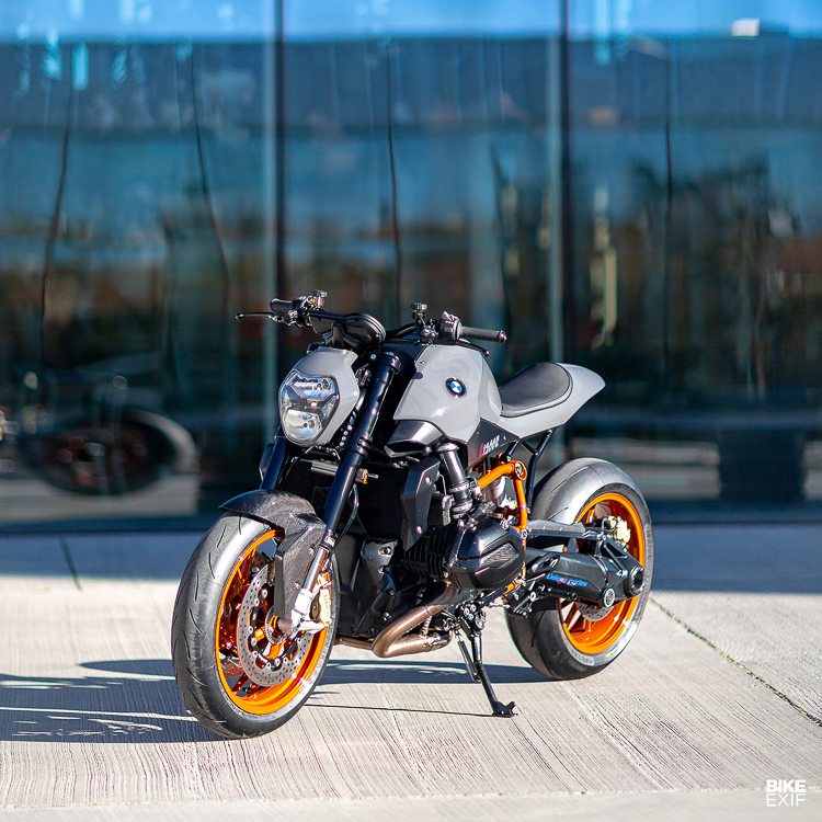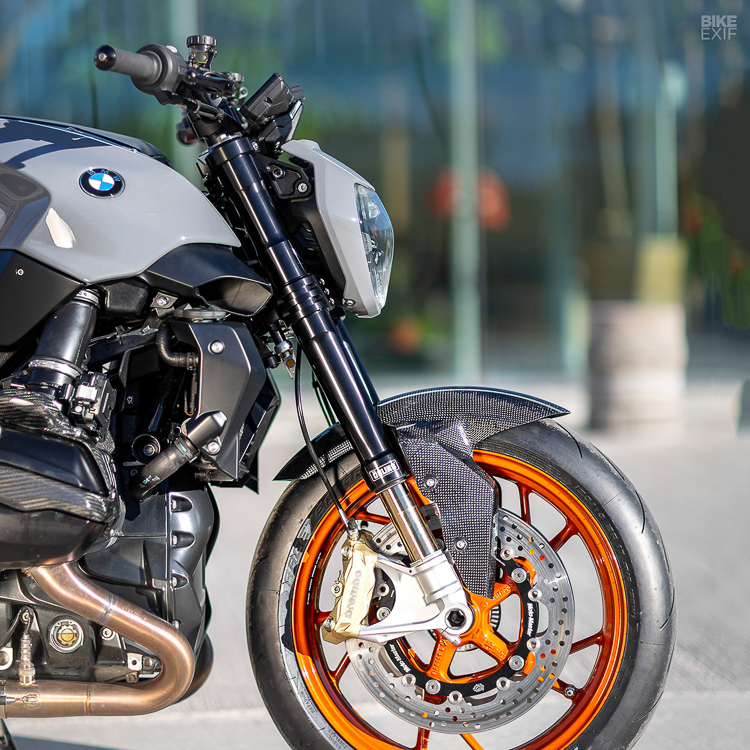 Transformasi naked kepada gaya jalanan streetfighter boleh dilihat menerusi penggunaan komponen berjenama seperti fork depan FGRT227 Öhlins dan monoshock TTX GP Ohlins (belakang), yang dipadankan brek Brembo. R1200R ialah model naked kegemaran BMW yang dilengkapkan teknologi popular seperti enjin Boxer bersesaran 1,170cc (125hp).
