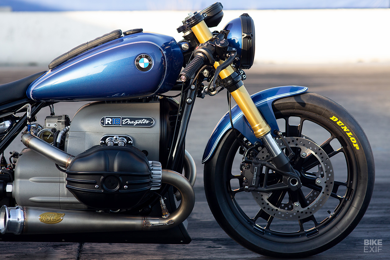 Sands, yang sukakan gaya pantas seperti muscle car Amerika, memilih mengubah bentuk asal R18 kepada gaya dragster hardtail yang dijenamakannya sebagai BMW R18 Dragster. Ya, mengubah suai R18 sebagai jentera drag bukan ‘perkara normal’ jika melihat pada output asal model itu, cuma berkuasa 91hp dan tork 158Nm.