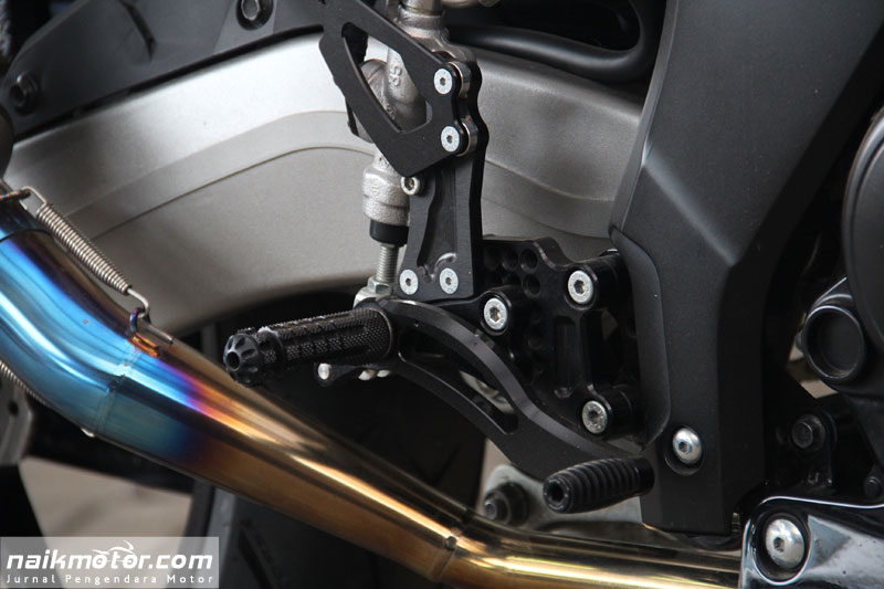 Ukuran rim juga tidak banyak berbeza dan masih sepadan dimensi GSX-R150 yang ramping. Bahagian swingarm dikurangkan sekitar 3sm untuk disesuaikan dengan casis GSX yang lebih kecil. Posisi Pro-Link nampaknya sesuai dengan casis model Suzuki itu.