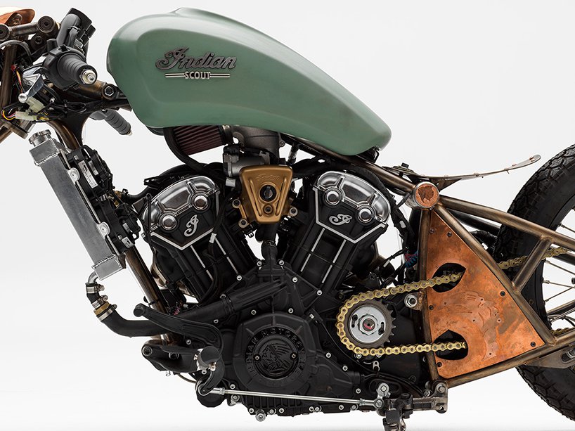 Chopper hardtail itu diilhamkan daripada karya seni mekanikal yang nyata tampil berbeza daripada realiti industri motosikal, termasuk jentera kustom Indian Scout FTR1200, RSD Indian Scout dan syarikat garaj David Beckham, Knuckle. Frem terdedah membolehkan anda melihat lebih dekat enjin V-Twin dimilik jentera itu.
