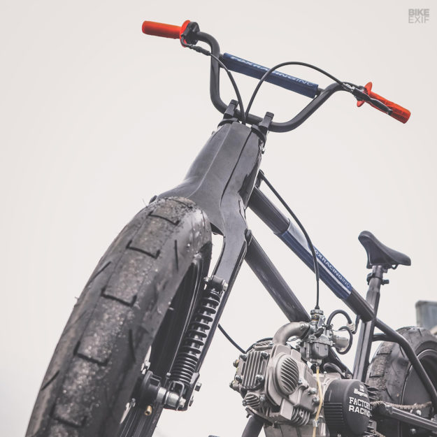 “Saya selalu mahu bikin BMX berenjin. Saya ingat lagi masa kecil dulu, MBK dan Peugeot ada lancar beberapa produk, tetapi sayang tak terlalu berjaya. Dua tahun lalu, saya akhirnya ada masa untuk bikin,” kata Tom.