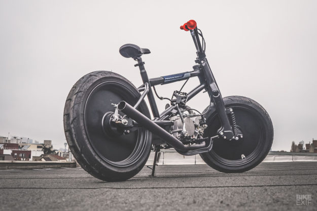 FENOMENA motosikal kecil bukan saja menular di Asia, tetapi juga mat saleh. Contohnya, Crossbreed yang dihasilkan Tom Dun dari Perancis ini dibikin dengan menggabungkan basikal BMX dan motosikal Honda Cub. Dia yang juga pereka kustom di bengkel 56 Motorcycles ialah pakar modifikasi motosikal Honda, tidak kira bersesaran kecil atau besar.