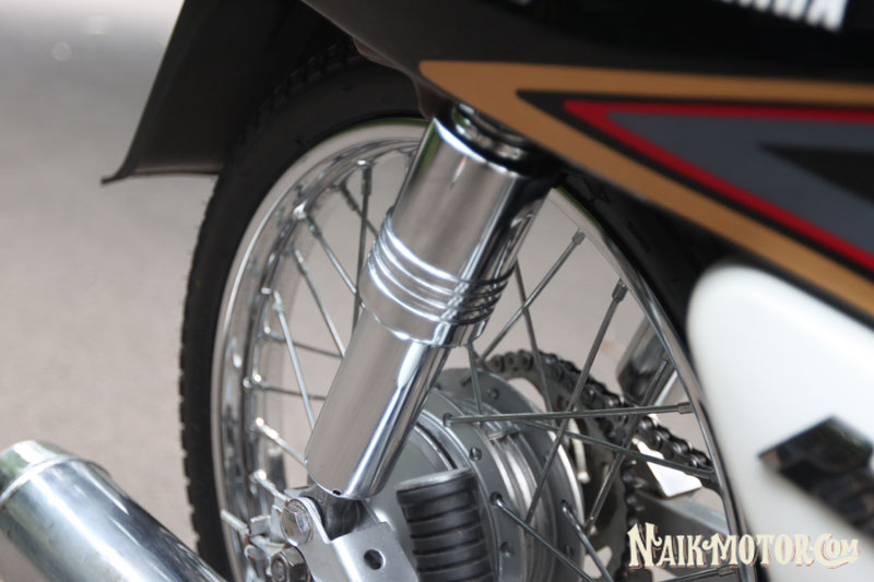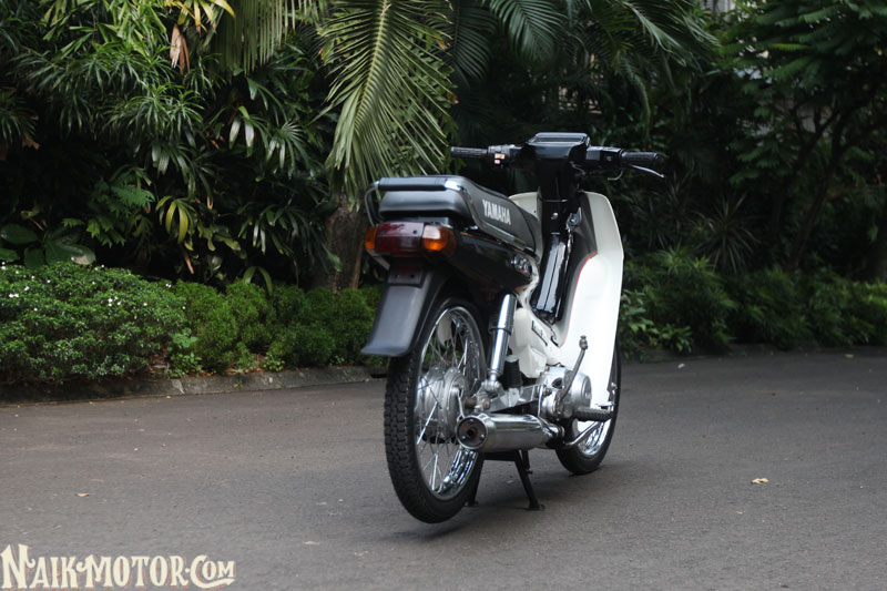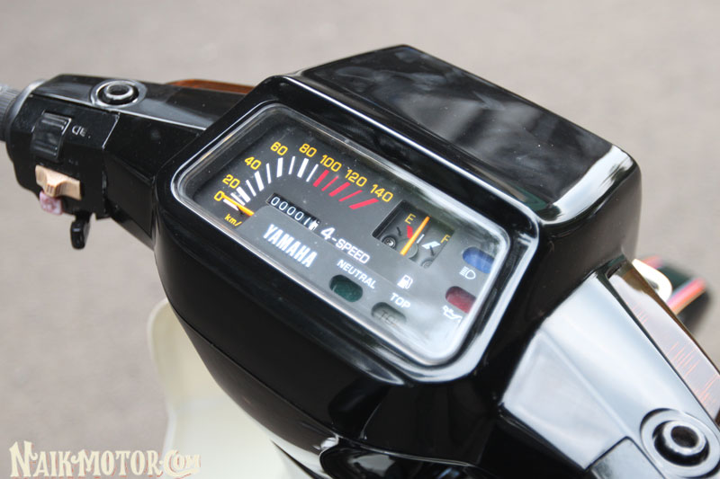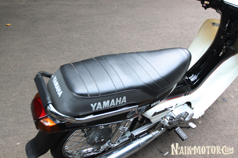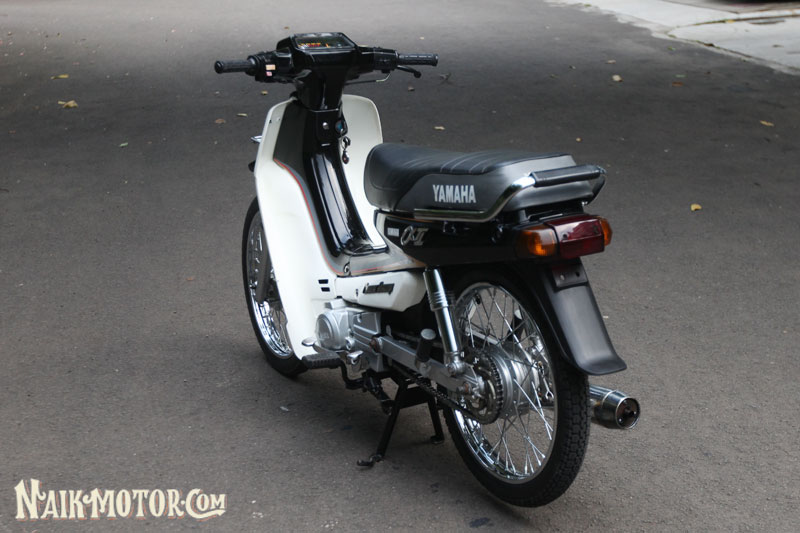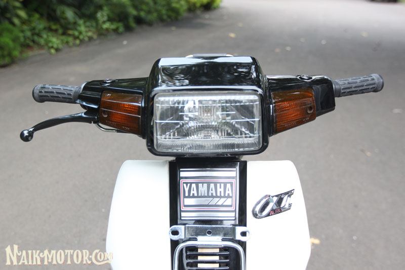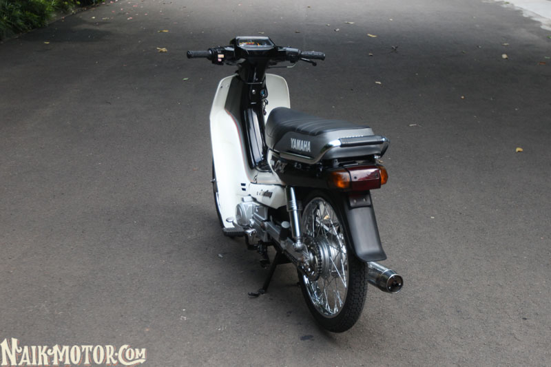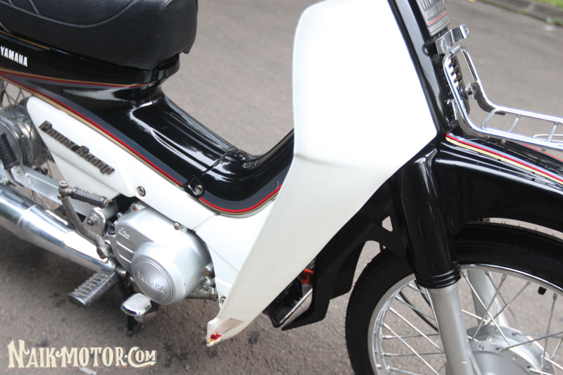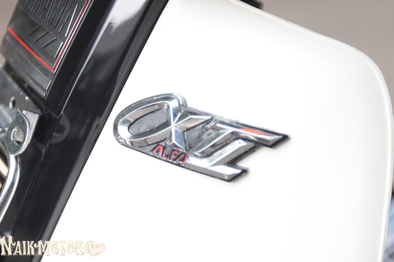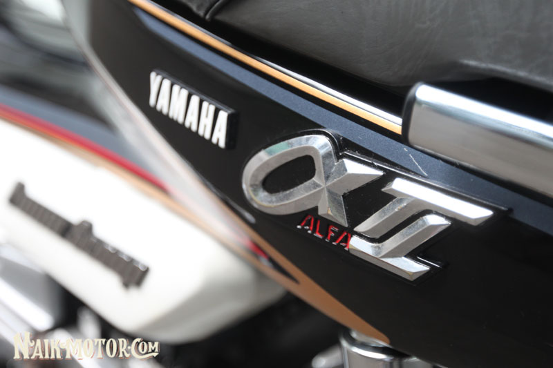 Yamaha Alfa (1989) generasi pertama itu masih lagi mengekalkan ciri fork depan, swingarm dan blok enjin perak. Jelasnya, ada beberapa alat ganti kecil yang berharga sangat tinggi, seperti lencana krom aII pada fairing depan dan badan motosikal di kiri dan kanan dengan harga boleh mencapai Rp1.5 juta (RM430). Boleh dikatakan hampir semua bahagian kapcai ini dilengkapi komponen baharu, yang dibeli sejauh Medan.