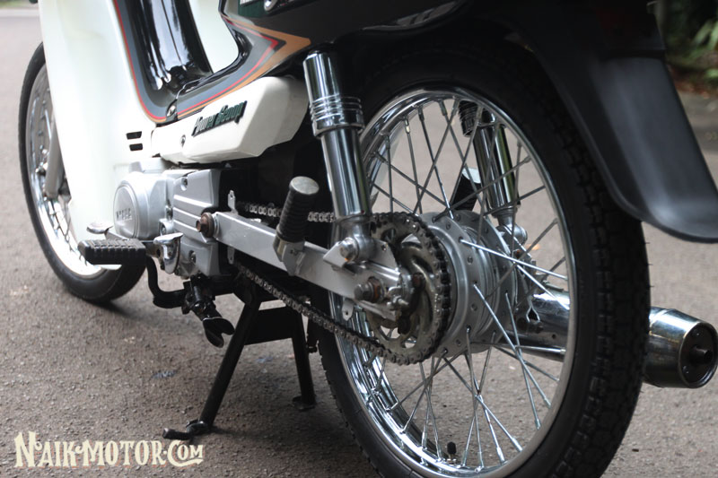 Cuma bahagian cermin sisi dan penutup rantai masih belum sempat dipasangkan Ari. Ditanya kenapa dia sangat sukakan Yamaha Alfa dan Champ, jawabnya, dua model itu ialah motosikal impiannya sejak di bangku sekolah kerana memiliki rekabentuk badan sporty selain menyimpan banyak nilai sentimental.