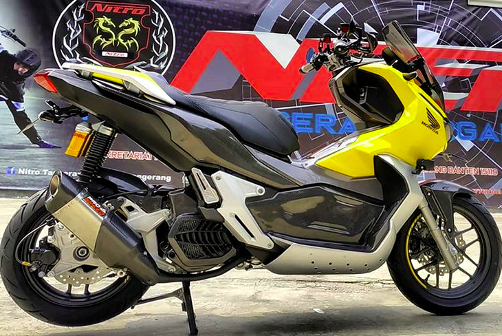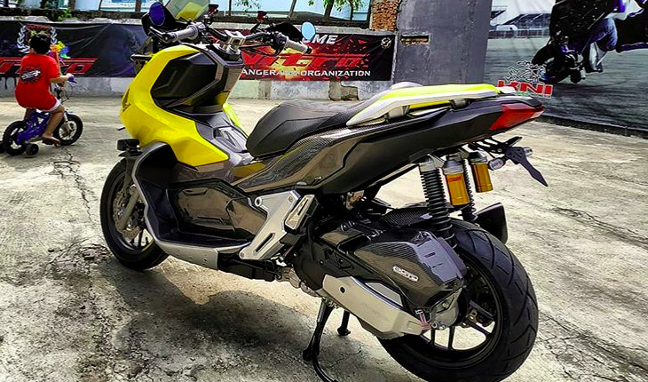 Penampilan skuter advencer versi kustom ini diserlahkan menerusi padanan warna kuning KenKei-Custom sentuhan Witjax-Modizigner yang tampil ringkas dengan konsep Urban Street.